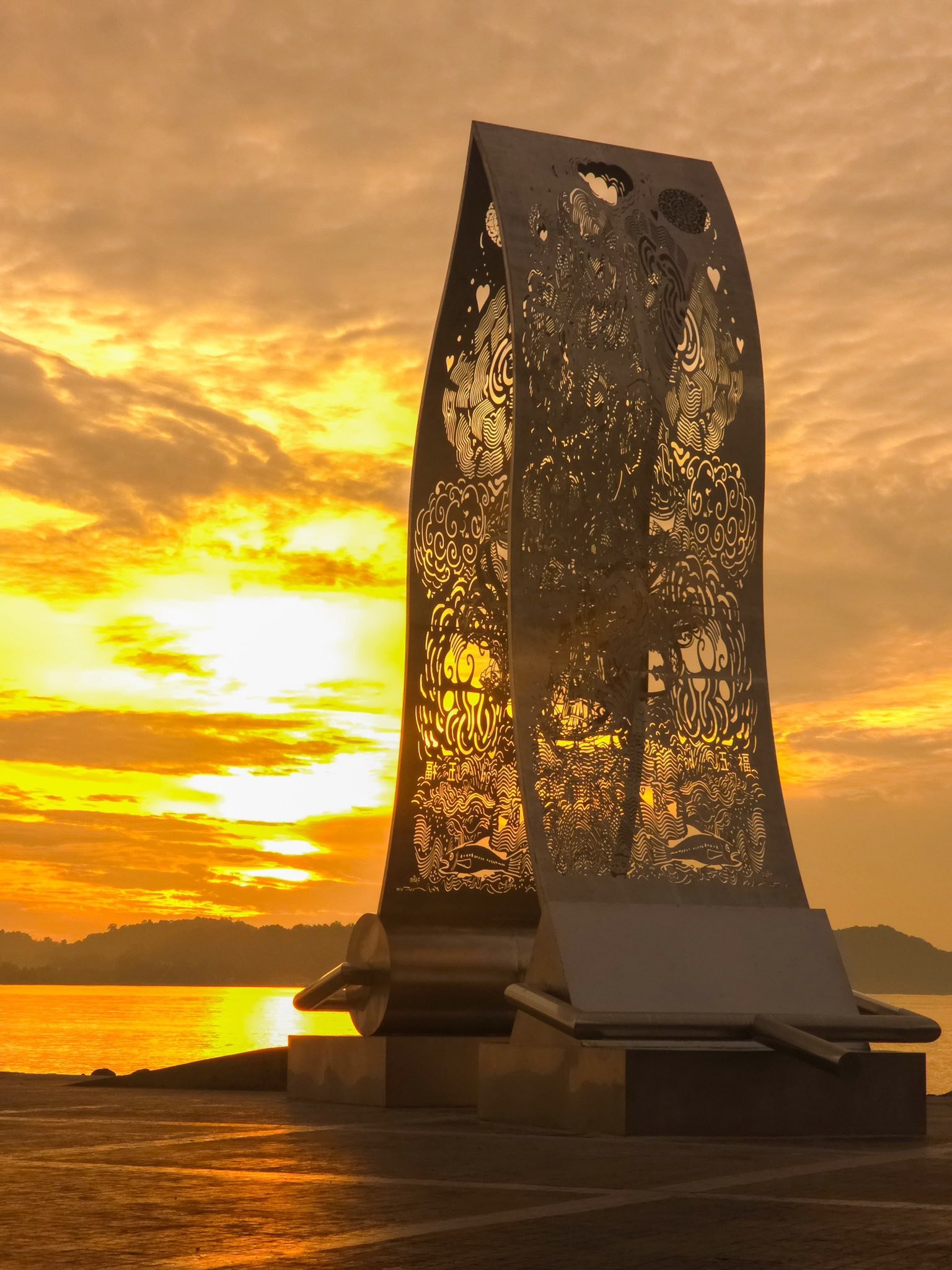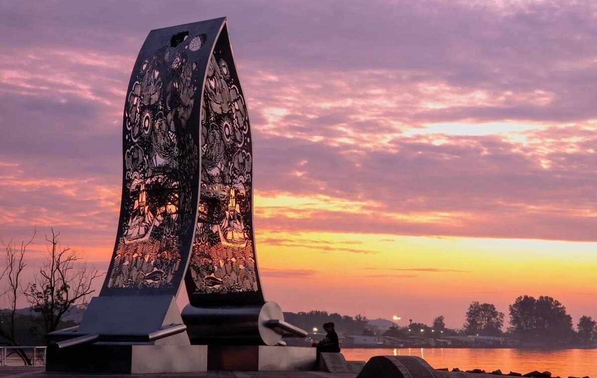The silver surface evokes the island’s legacy of tin mining, once a vital resource of Phuket, while the sail-like form within the work represents a journey that deeply and contemporarily connects the wider world with the cultural roots of this historic port city.